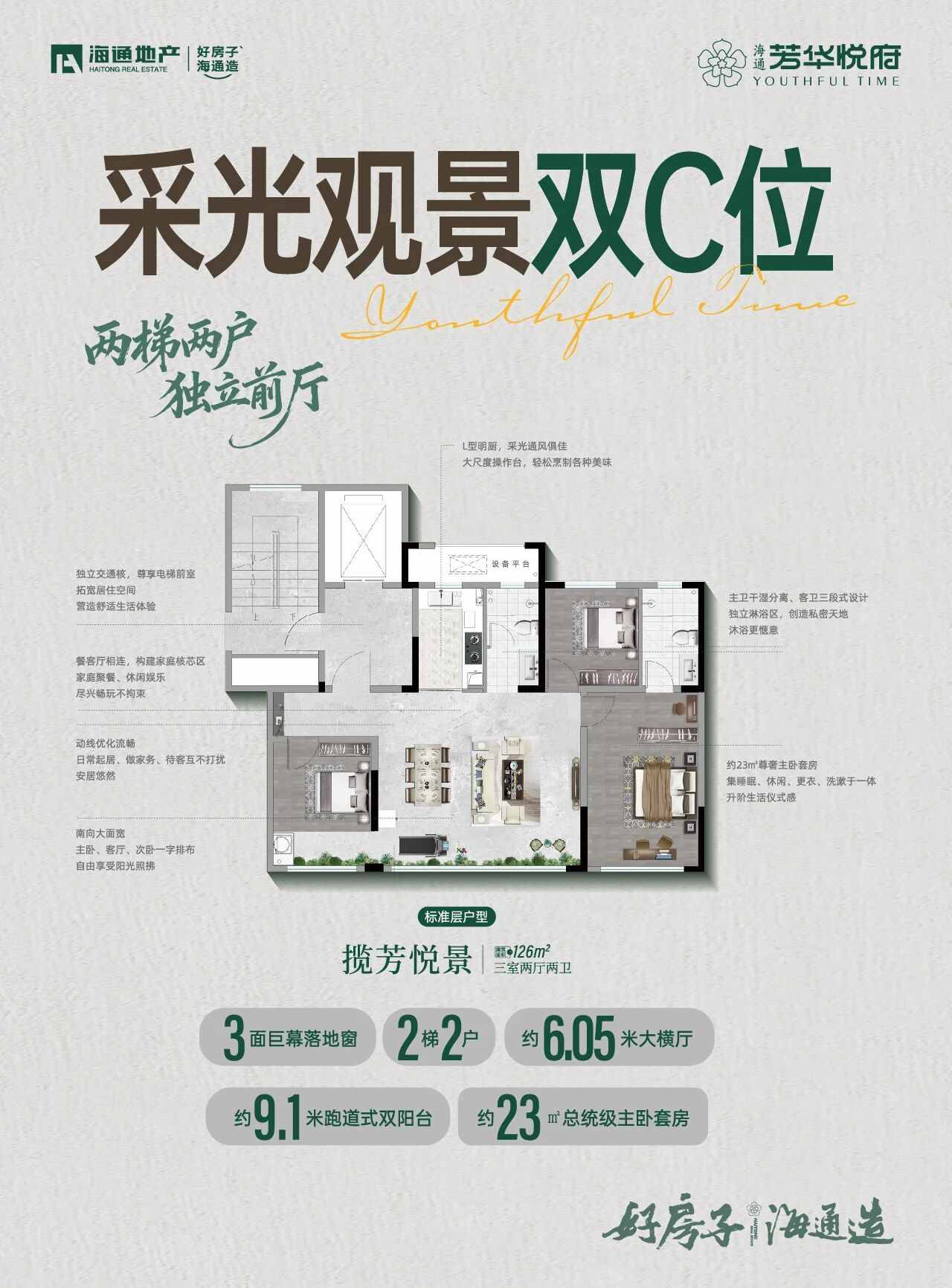 約126㎡兩梯兩戶,獨立前廳,采光觀景皆頭排